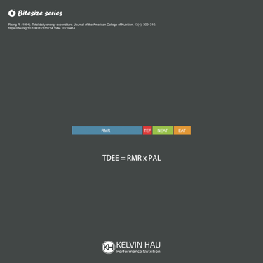 • 計算每日能量消耗 (TDEE), 即是透過Formula 計算/量度出自身的基礎代謝率(RMR), 再與活動指數(PAL)相乘。活動指數是根據 NEAT + EAT 作出評估