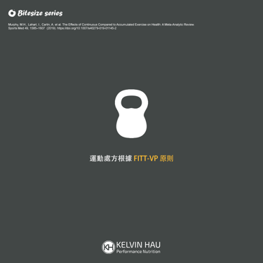 • 透過適當的減少攝取熱量並配合根據FITT-VP原則設計的運動處方,達到減重的終極原則 - 熱量赤字(Energy Deficit)