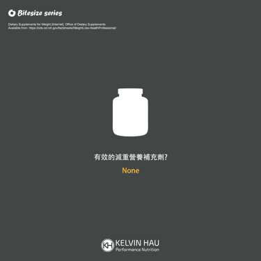 • 有效的減重營養補充劑? Sorry, 沒有, 不要妄想。聲稱有效的, 一般都是 BS