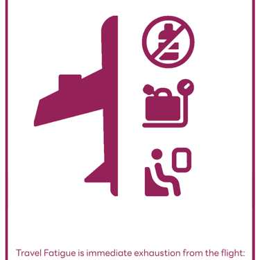 😴 Travel Fatigue is the immediate exhaustion from the flight itself: dehydration, low cabin pressure, and being stuck in a seat for hours.